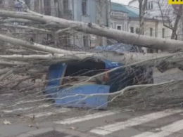 Тополя розчавила пасажирську Газель у Миколаєві. Величезний стовбур буквально розрубав мікроавтобуса навпіл.